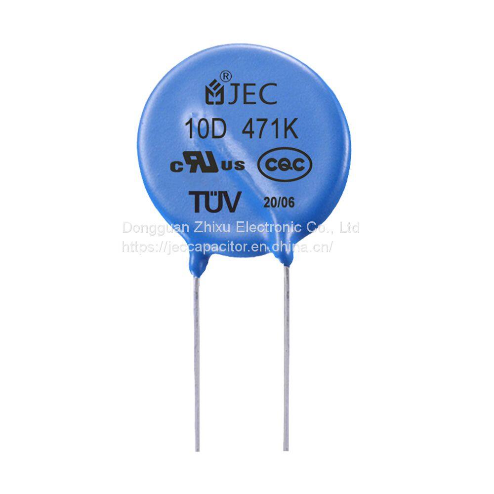 14D 471K refers to the size of the product with a diameter of 14mm, K is the varistor voltage range of ±10%, and 471 means the varistor voltage is 470V.